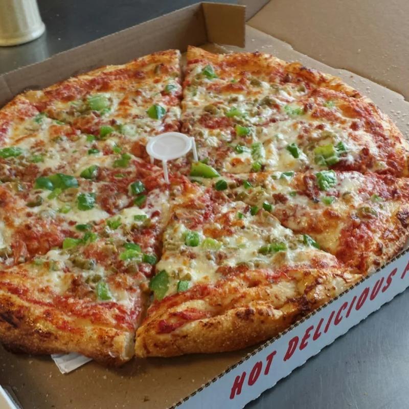 Pizza was hot and super yummy. The 24"pizza could feed a family of 6 easily . Even the guy with no teeth ate the crust with no problems at all. Will be ordering again!!